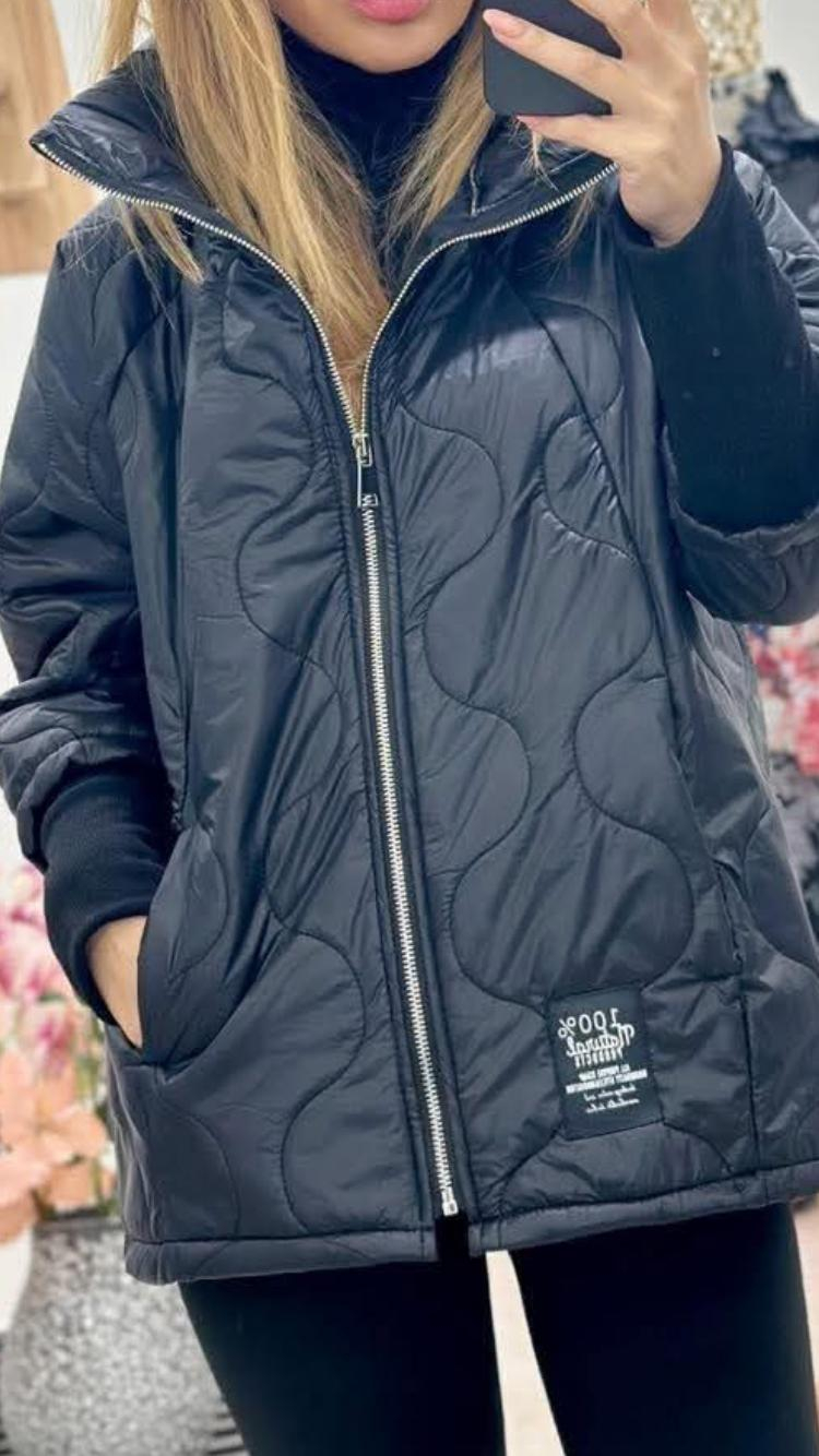geaca matlasata cu maneca tricotata, marime universala (potrivita la marimile 40, 42,44,46 si 48)